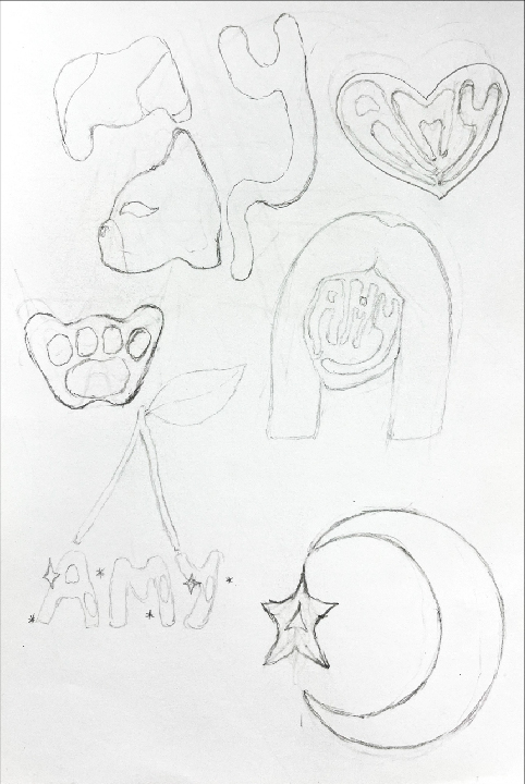I designed a Ikes face in the form of a lowercase “a.” Then the body with the “m” and the tail with the descender of the “y” at the end. The details of the oval eyes and whiskers further indicate the features of a kitty. Embedding a feline into my name.