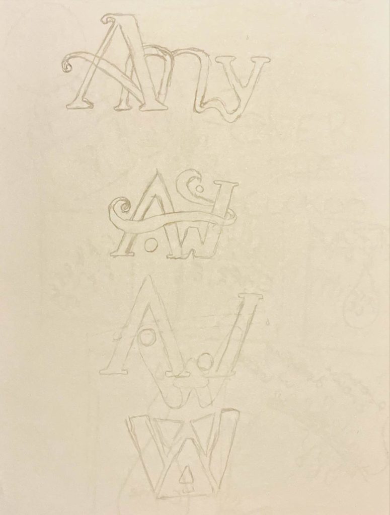 I engrossed myself in experimentation and inspiration for my second logo design. Here I was influenced by the old-worldy design of pubs and coffee shop signs. A style I admire and enjoy the history of.
