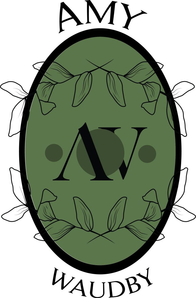 Using my full name again, I fabricated an oval shape and curved my full name around the shape. To add more influence and detail, I assembled a simple design for my initials in the middle of the logo. I included details of that same leaf imagery I used in the last logo but with extra aspects and thinned out. This was to not take away from the overall look.