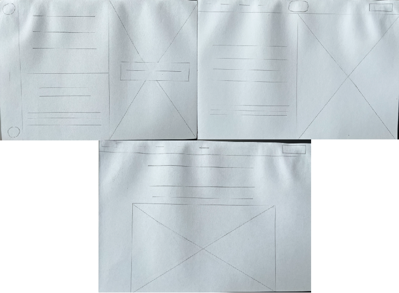 I sketched out three layouts for the wireframes on the desktop and went with the bottom one as that made the most sense since I just wanted to create a coherent website that flows well.