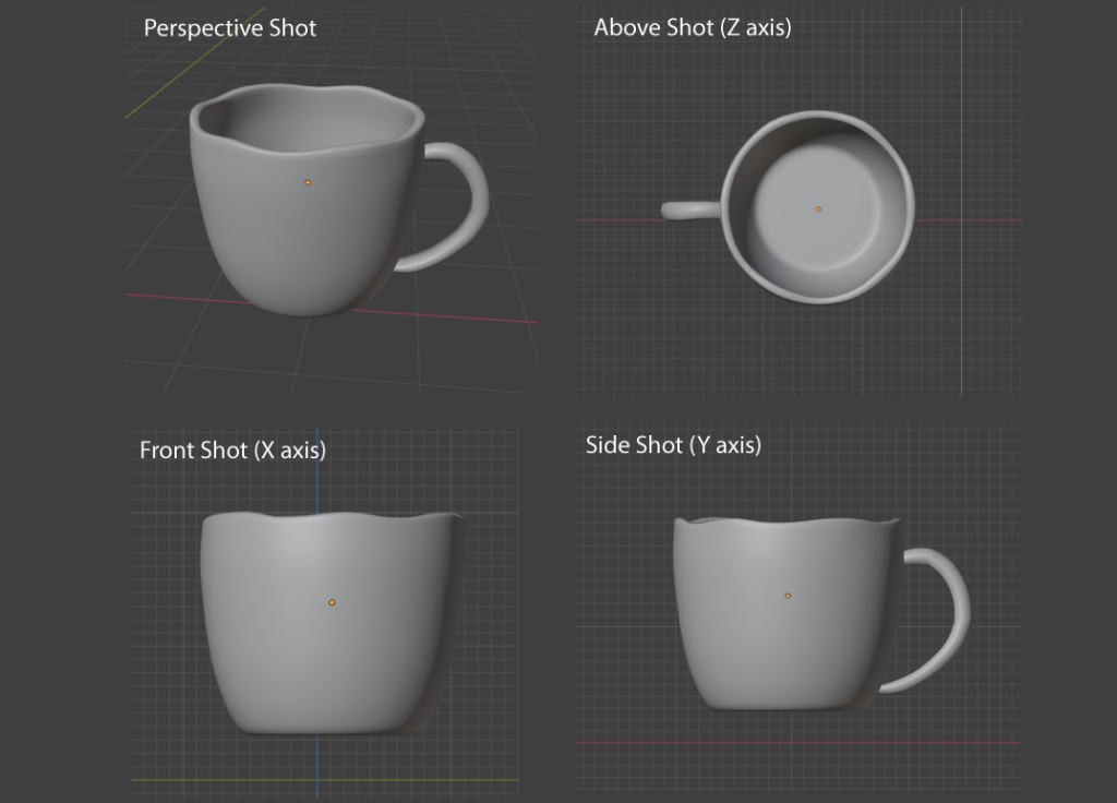 For the mug, I planned to go for a handcrafted style. I considered making it a flower, but I liked how this model came out. I aimed for soft and wavy shapes to correspond to the brand. I modelled this mainly using shapes and tools in Blender, but I also used sculpting to add the wavy element to the top of the rim of the mug. This gives a subtle imagery of a flower and achieves that handcrafted look.