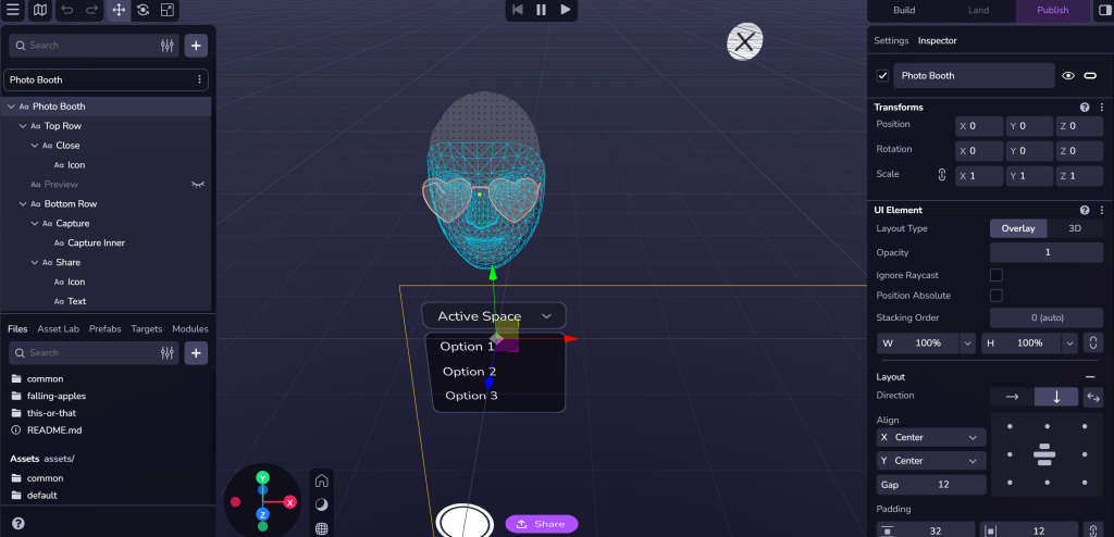 Finally, I tried out the face effect, which allows you to add funny glasses, hats, and accessories using your phone’s camera. For mine, I downloaded some glasses off Sketchfab so anyone can wear them. This would be a fantastic way to advertise accessories like hats, jewellery and even makeup.