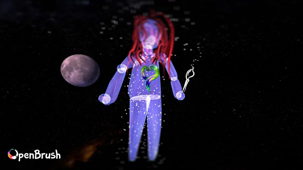 Finally, I delved into VR Art, which was distinctly different from the rest of the media, as it is experienced within a VR headset. Painting with your hand in 3D gives users a great deal of freedom and a unique way to display art. As the designer, you must consider how the piece will appear from every angle and how others will interact with it. For my practice project, I created a large-scale model of a person, not a specific one, but rather a fictional one. This allowed me to explore each brush style and stroke to see what kind of texture and animation it creates.